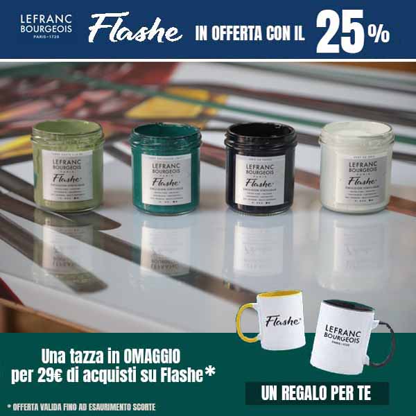 La gamma di colori acrilici Lefranc Flashe è presente sul mercato dal lontano 1954, rappresentando uno dei primi materiali moderni ad offrire nuove possibilità espressive al di fuori della tradizionale pittura ad olio. Si tratta di un colore vinilico che grazie alla sua aderenza su vari supporti, libera gli artisti dalle restrizioni dello studio e della tela, ricreando al contempo gli effetti delle antiche tempere ed i fondi delle pitture primitive, regalando toni soffusi, vellutati ed opachi. Le proprietà uniche di pigmentazione ed opacità di Lefranc Flashe trasformano l'esperienza artistica, rendendo il colore assoluto e multiforme. I suoi pigmenti lasciano un'indelebile impronta su ogni supporto. Lefranc Flashe quindi si distingue per opacità e potere coprente su diversi supporti, offrendo al pittore la possibilità di dipingere su qualsiasi superficie con una resa opaca.